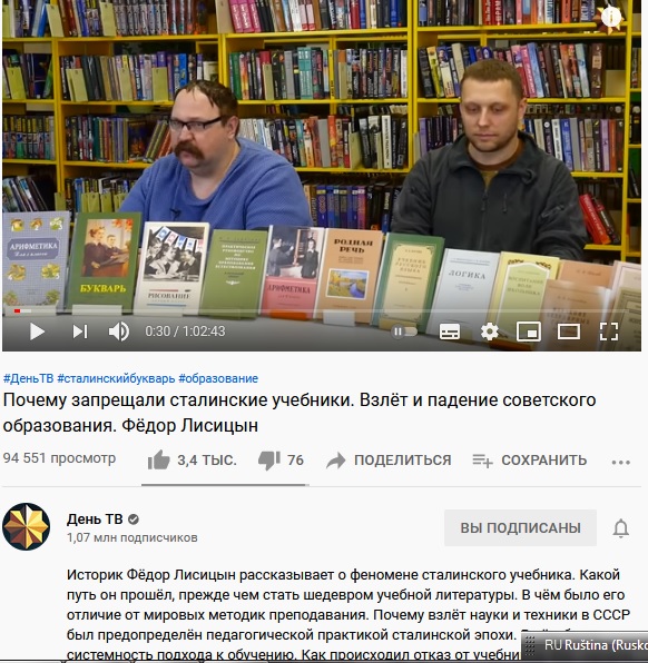 Об этом видео "Почему запрещали сталинские учебники. Взлёт и падение советского образования. Фёдор Лисицын": http://www.youtube.com/watch?v=kMBzoikFaeQ