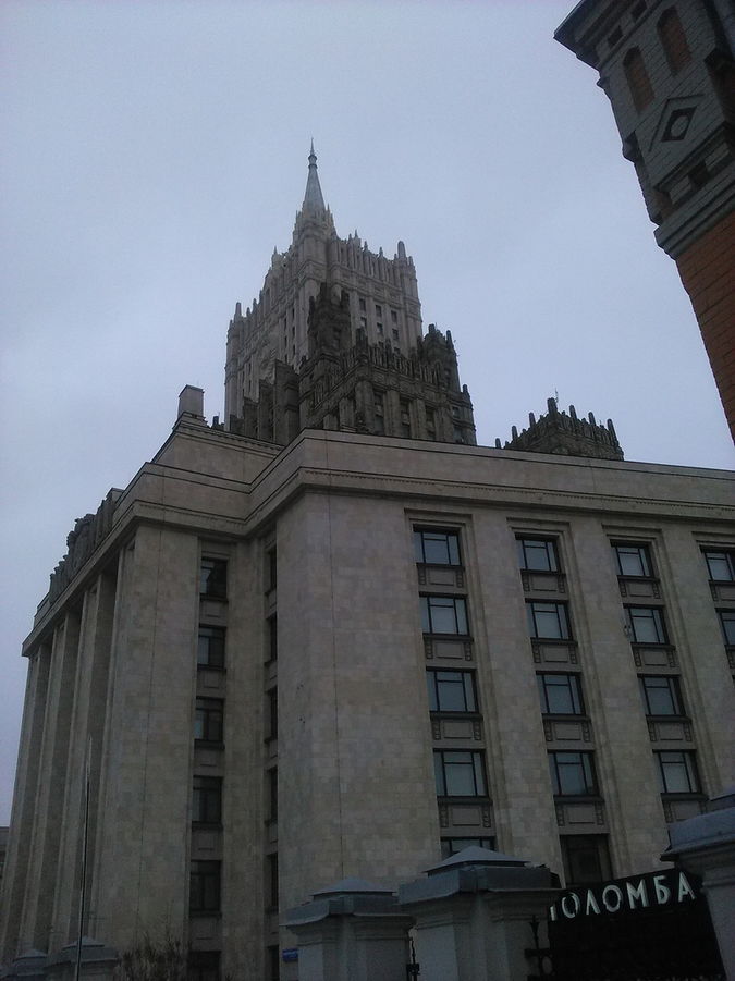Еще я проходил мимо, внезапно возникшего исполином, здания МИДа - следующей Сталинки. Так-же как и с предыдущим вариантом, здесь я уперся в небо, и смотрел минут 5-10 на размеры этой высотки, в восхищении, сам себе говоря под нос: "Ну надо же! Вот это да!" и так по-многу раз, пока не вышел из оцепенения! Я сфотографировал его пару раз, и решил, что мне пора что-то уже делать, как-то куда-то соображать. Я уже собирался ехать обратно в Питер, поскольку столько всего перевидел и перечувствовал здесь, в Москве, да и время клонилось к вечеру. Кто-то мне сказал, кого я спросил, что уезжать надо не с Ленинградского, а с Курского вокзала, и я решил во чтобы то ни стало, попасть именно на Курский вокзал. Я шел наощупь, но тут мне попался какой-то мужик, который, узнав, что я иду на Курский, решил меня проводить, поскольку он тоже шел в эту сторону. Он рассказал мне, пока мы шли, что он - простой чиновник, и "что чиновники тоже люди, и бывают хорошие!" При этом, мне показалось, что он говорил, готовый расплакаться, от того, что происходило тогда вокруг, имея ввиду ту же самую пидоростию, которая мне казалсь на каждом шагу, и которую он так-же как и я замечал и примечал, и с трудом сдерживал слезы - здоровый мужик, или это все от того же, что "Moscow doesn't believe in tears"? Уже не знаю. Вообщем, как-то он меня довел, и я поблагодарив его, распрощался и вышел к вокзалу. Денег - а именно 1600 рублей - на билет, хватило только-только - и я был рад этому обстоятельству. Мне нужно было ждать пару часов до отъезда поезда. Делать было нечего, и я решил ждать в зале ожидания. Я достал гитару и начал играть, знакомые мне, блюзы, какие-то битловские вещи, на что новый мужик, сидевший прямо за мной, отреагировал, и заговорил - "откуда я?" и "что мне нравится из музыки?" он взял у меня гитару и сам попробовал что-то сыграть, поскольу умел. Он ехал в другой город, и находился там так-же в ожидании поезда, вместе со своей женой. Я сказал ему - "Да вот, мол, приехал, думал тут поиграть на улице или в метро, но понял, что этот город не достоин моей игры, а может быть я его не достоен, короче, мы друг друга стоим, и поэтому, я, мол, разочаровался, и решил не открывать ему свой талант, и уехать отсюда неоткрытым никому!" Он вроде меня понял, а вскоре его жена сказала ему, что им пора идти, и они ушли. Я продолжал играть, иногда что-то выкрикивая, как-будто я какой-то пророк - пишу песни Про Рок! Но никто на меня не реагировал, только два мужика поодаль чуть не подрались друг с другом. Везде было полно бойцов Рос. Гвардии, и я думал, что вот-вот что-то произойдет, что-то случится, какая-то массовая драка, а на кой иначе они все здесь стоят, и охраняют порядок, зачем их так много-то? Но драки не произошло, только гнетущее ощущение тревоги и раздражения витало в воздухе. По громкоговорителю постоянно твердили одно и тоже - монотонный голос - а именно: "Поезд Москва-Петушки отправляется через пол-часа!", я чуть не рассмеялся от этого! И так - по сто раз, этот голос вещал откуда-то монотонно, так что я уже начал выходить из себя от этого, и я вышел из здания, наружу, чтобы не ощущать этой гнетущей атмсоферы больше, и чтобы просто перекурить. Подошел сначала к уборщице - она разговаривала с другим работником - и я услышал мельком фразу, донесшуюся до меня: "Да что же делать, когда столько "этих" уже развелось вокруг? Теперь и свободно-то этого слова не скажешь!" - очере