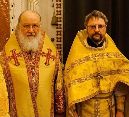 На фото с патриархом Кириллом — иеромонах Тимофей (Ясеницкий), доктор церковной истории, бывший проректор по научной работе Коломенской духовной семинарии.