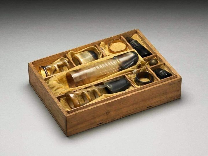 Набор женских «туалетных» принадлежностей для сексуального удовлетворения, состоящий из шести фаллоимитаторов и подставок для пениса, двух колец и металлического шара. Все эти примеры японских секс-игрушек, производились из рогов буйвола (ушидзо), панциря черепахи (камэдзо) и дерева (мокудзо). Внутри полого фаллоимитатора (в центре) помещалась хлопковая вата, смоченная в горячей воде, при этом горячая вода делала фаллоимитатор мягким и теплым.