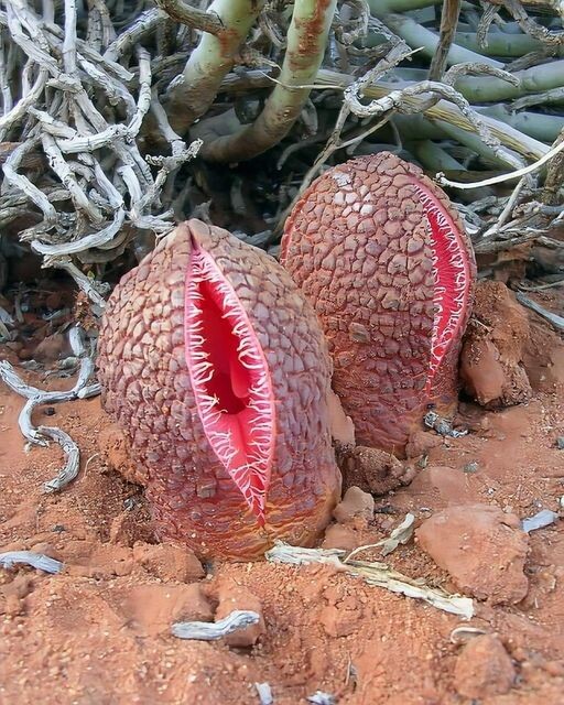 Гиднора африканская - паразитическое растение родом из Южной Африки. Она не фотосинтезирует, а прикрепляется к корням других растений. Ее цветы расцветают на поверхности после обильных осадков.