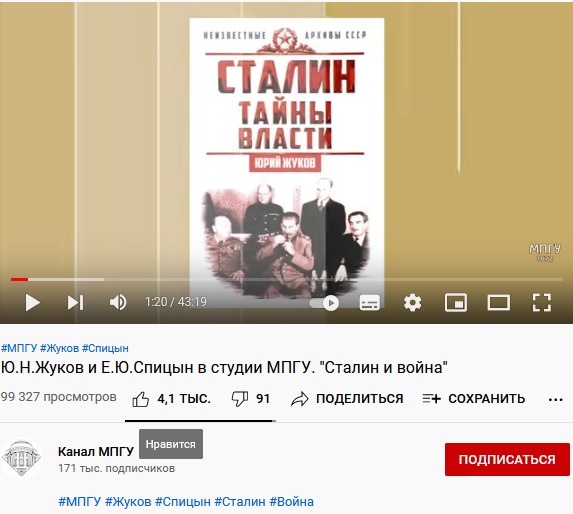 Ю.Н.Жуков и Е.Ю.Спицын в студии МПГУ. "Сталин и война": http://www.youtube.com/watch?v=YFNOWfX3t-Q
