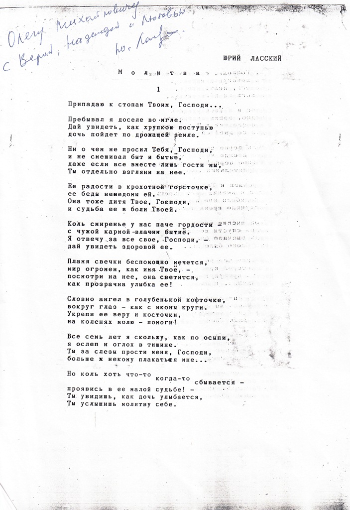 Молитва. Припадаю к стопам Твоим... Юрий Ласский