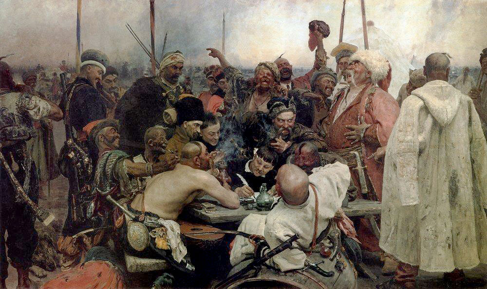 Нет, не могу я пройти мимо «Запорожцев». Пусть смотрят наши зарубежные гости. на картине перед ними казаки из мифологизированных персонажей приобретают зримую плоть. А ещё и дух вольности и бесстрашия. И это хорошо.