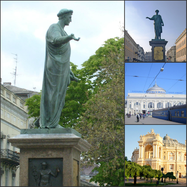 Подошли и постояли возле памятника основателю города Дюку Ришелье. Я тут же вспомнил детские стишки: -если стать на крышку люка, то увидишь чл.н у Дюка. Поискал глазами и нашел ту самую крышку. И точно , стоя на ней, фигура держащего в левой руке свернутый в трубку свиток, грамоту на градостроительство ,и складки одежды Дюка чрезвычайно похожи на мужские гениталии. Сходство еще больше усиливается во время дождя, когда со свитка стекает струйка.