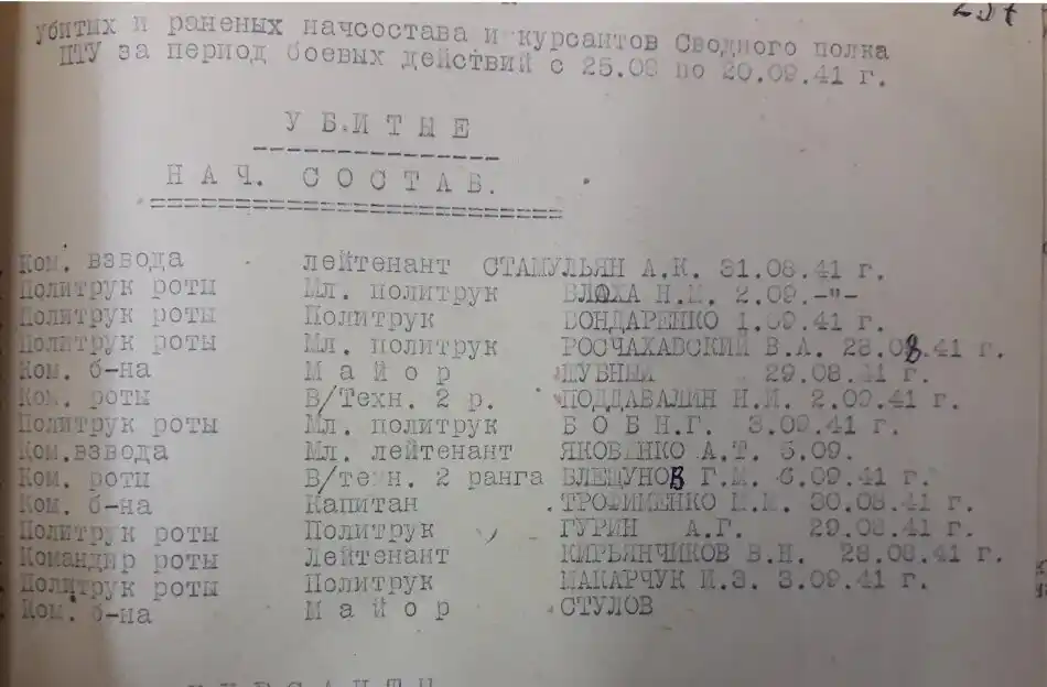 В списке погибшего начсостава сводного полка Полтавского тракторного училища /ЦАМО_фонд 60122, опись 35353, дело 3, лист 257/ ШЕСТЬ политруков рот.