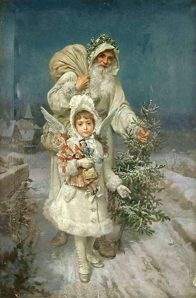 На фото: старинная открытка 1901 года, со Святым Николаем и Ангелом изданная типографией во Львове...
