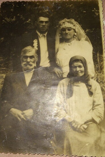 А на фото 1948 год. Одесская область. На свадебной фотографии в знак уважения новобрачные посадили своих родителей впереди себя...
