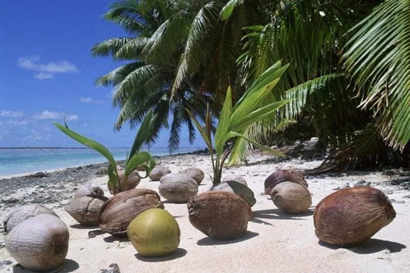 Кокосы могут пересекать океаны, после чего, если их волнами выбросит на берег, они запросто могут прорасти и превратиться в новое дерево.