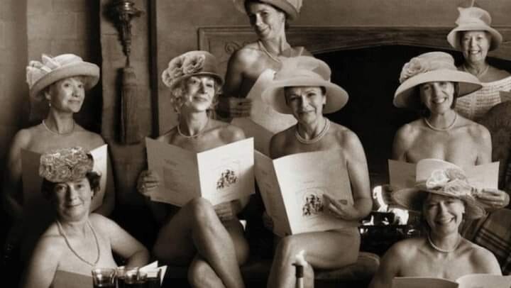 Так на свет появился «альтернативный» календарь британского женского института на 2000 год. Фотомоделям в то время было от 45 до 65 лет, а снимки делал муж одной из участниц, профессиональный фотограф. Снимки выполнены в старинном духе и проникнуты чисто английским юмором: женщины на них невозмутимо позируют за традиционными занятиями - читают романы, играют на пианино, поливают цветы, а на декабрьской странице поют хором в рождественских колпачках. Просто все они обнажены (но» стратегические " области искусно закрыты).