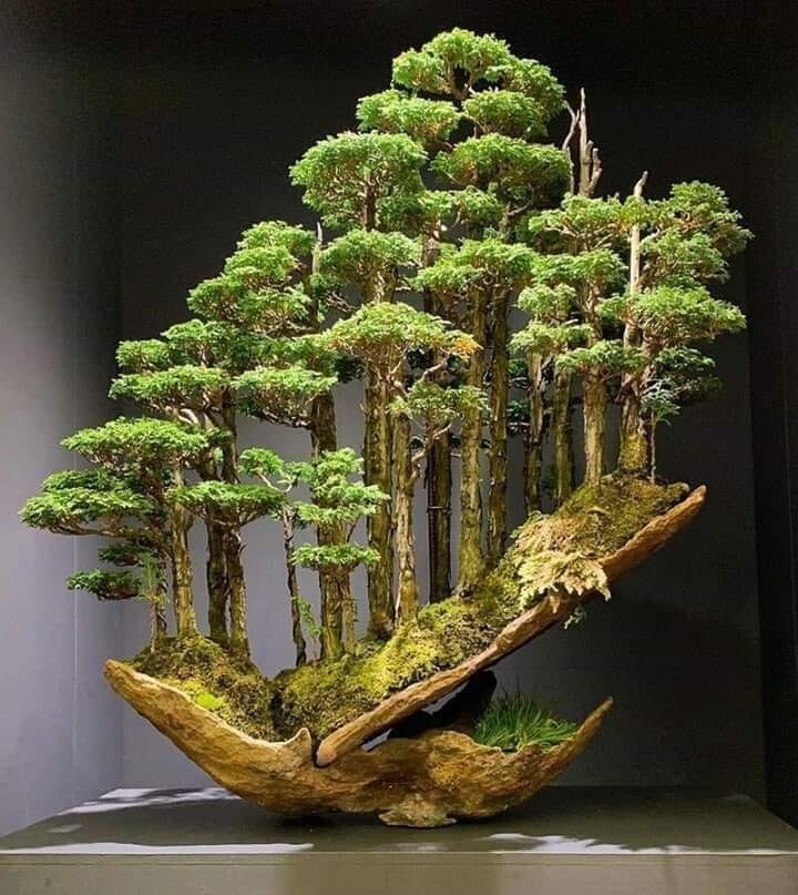 Этот лес бонсай из дерева хиноки выращен лучшим мастером Японии по искусству бонсай Масахико Кимурой. Данный экземпляр не так давно был продан на 38-й ежегодной выставке Nippon Bonsai Taikan за 1,800,000 йен, что составляет приблизительно 15,800 долларов США Хиноки является особым видом кипариса произрастающим в центральной Японии. Его древесина знаменита благодаря мелкозернистой текстуре и устойчивости к гниению. Он очень медленно растет, поэтому древесина весьма ценна и используется только в наиболее важном строительстве или производстве. Древние дворцы сделаны из хиноки, также из этого дерева построены театры. Также японские бани. Когда нужна высокая прочность, например, при изготовления ракеток для пинпонга хиноки подходит лучше всего. Также это дерево часто используется в искусстве бонсая.