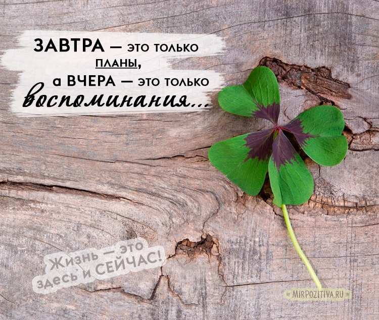 Позвольте себе просто жить в мире и согласии. Жизнь — это здесь и сейчас. Завтра — это только планы, а вчера — это только воспоминания.
