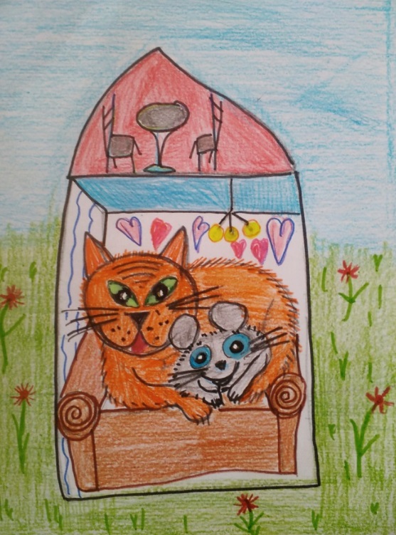 У кошечки с мышкой глазки разбежались, а тропинки манят и тянут их за собой в разные стороны, как магнитом. Тогда трепетные комочки прижались животиками к земле, друг к дружке прильнули бочками и щёчками, а хвостиками своими переплелись в крепенькую косичку, как у девочек, чтобы лесовичок не смог их разлучить и заманить поодиночке в ловушку.