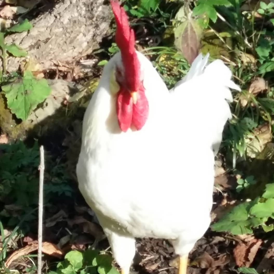 Подбежал самый шустрый из оставшихся трёх петухов и пытался урвать своё! Пока я вела между ними переговоры, наклонилась и как раз лбом напоролась на острючий рог Мухи!