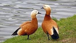 А что же огари? Это семейные, так и хочется сказать, люди. У крякв, да и у других утиных пород, а их летом в наших краях водится не меньше десятка видов, пары образуются только на брачный период. Причём бывает полно холостых, к примеру, селезней. На них, да на вальдшнепов весной, как правило, и разрешается огнестрельная охота. Огари живут круглый год вдвоём. Вот и эта, залетевшая в Балашиху пара, показала другим уткам с их беспорядочными «связями», как надо правильно жить. Наступил брачный весенний период, и огарь-селезень разогнал вообще всех других уток с верхнего пруда Макаронки. Если прилетали к воде холостые селезни, он немедленно поднимался в воздух под довольное или нет, не мне судить, гоготанье огаря-утки на берегу. Птица крупная, короткоклювая, имеющая даже зубцы на половинках клюва, потому грозная, но летающая не так уж быстро, запросто разгоняла непрошеных гостей. Где вот только эта пара собирается создать гнездо для вывода утят, пока непонятно. Скорее всего, огари покинут этот слишком для них чистый водоём и найдут в прибрежных рогозах и камышах Пехорки более уютный уголок для вывода потомства. А когда утята-огарята встанут на крыло, родители, может быть, и покажут своим детям… богатый хлебом от добрых людей верхний пруд на Макаронке.