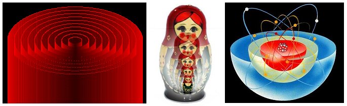 Примером принципа бесконечного плодотворения может служить "матрёшка", а примером цикличного принципа развития во времени причины в следствие (зерна в плод) служит дерево.