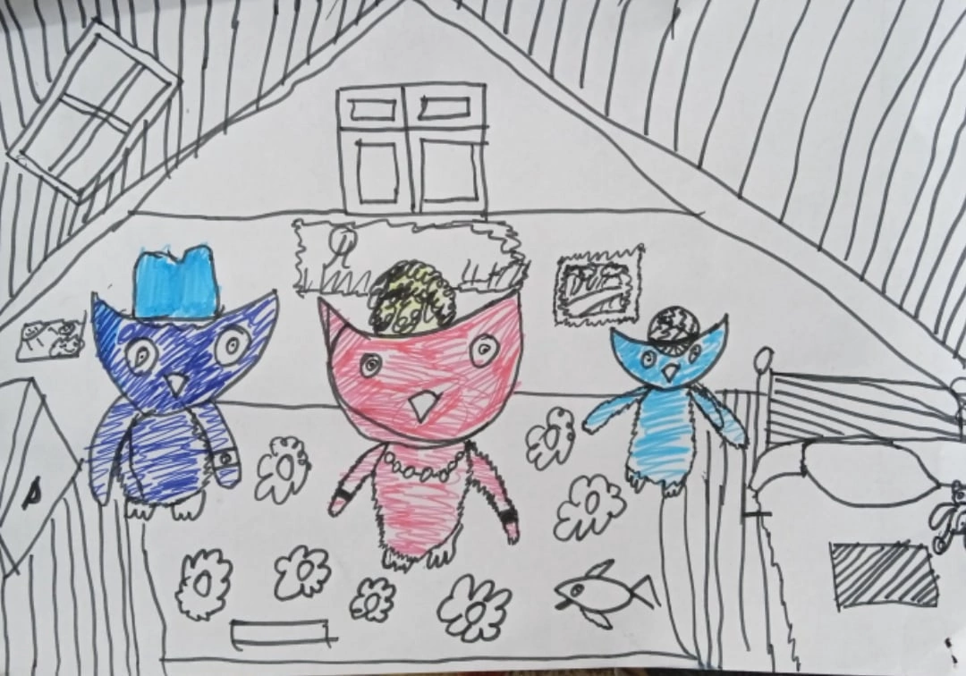 Она расставила аккуратно игрушки, а цветными карандашами, она придумала сделать заборчики, чтобы отделить животных друг от друга, совсем как в настоящем зоопарке!