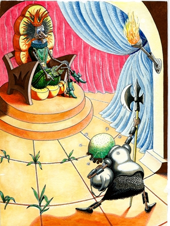 Репейник поднял корону и торжественно надел её на свою колючую голову. Полюбовавшись собой в зеркало, он вызвал Старшего Одуванчика. Постовой, войдя в королевские покои, услышал властный голос ненавистного Репейника: