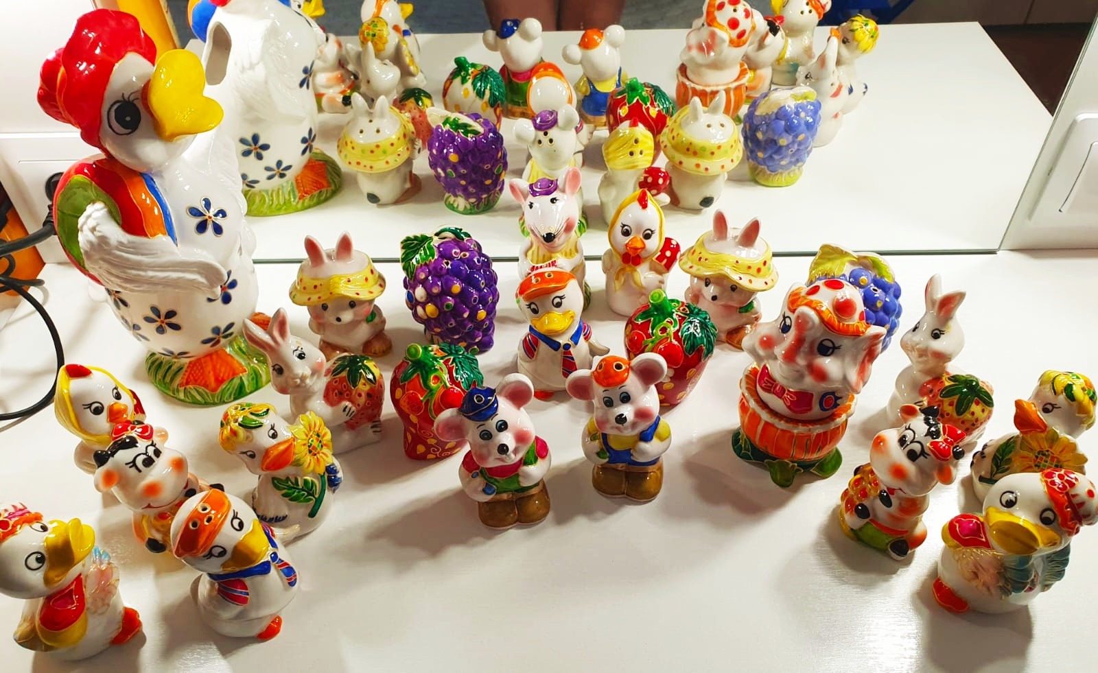 Вымывая я этих бедолаг, краска основательно смылась, и вид у семейки совсем опечалился. Ничего умнее я не придумала, как накупила специальной краски и начала их реанимировать. Разрисовала я эту братию, как Бог на душу лёг ! Не вооружённым глазом было видно, что руки у меня из ушей растут. Семейка смотрелась не аккуратно и наляписто. Оставила я эту затею и начала искать художников, которые работают с керамикой. На поиск ушло несколько лет! Все отказывались и смотрели на меня с сарказмом. Типа, такой хренью никто в городе заниматься не будет. Я и сама понимала, что тут нужен не только талант художника, специальные краски, кисти, печь обжига, а самое главное скрупулёзность в работе и терпение. Ибо реставрировать мелочёвку- керамику в размере 25 штук- это вам не будьте нате!