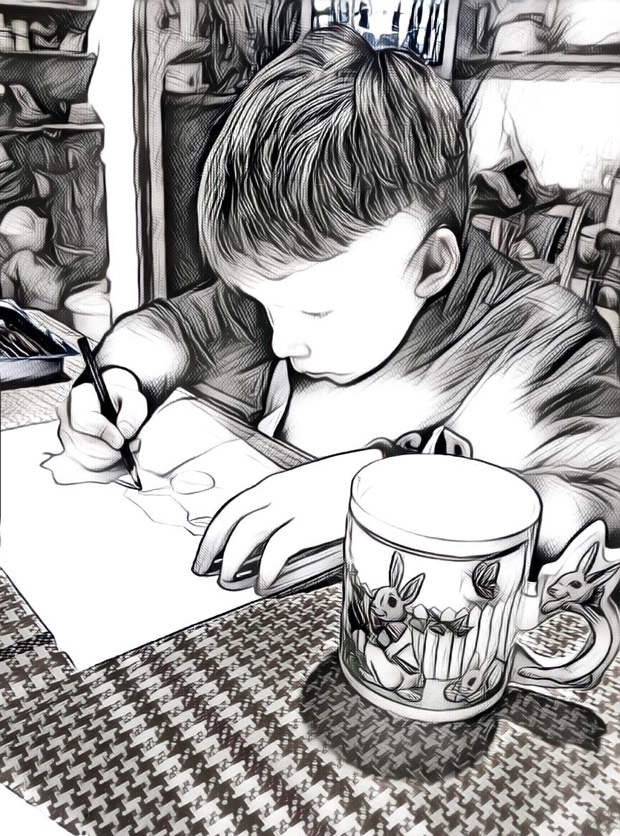 Зубы надо нарисовать покрупнее. И поострее. И много. Грифель подломился, продырявил и наморщил бумагу. Вот это зубы! Погоди, сейчас заклею еще бок. Бац! кружка опрокинулась, молоко разлилось и разбавило изумрудно-зелёный цвет задних лап до фисташкового. Лужа под пальцем течет по спине динозавра к хвосту.