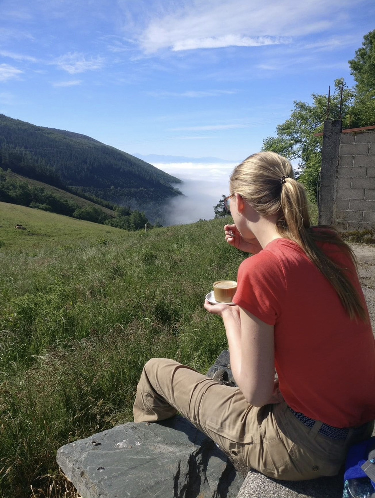 Люди приходили и уходили, звуки природы нарушал возглас “Буэн камино!”. Паломники с разными акцентами желали друг другу хорошего пути. Дорога исполняла желания, но не всегда моментально. На пятый день, спустя более сотни километров пути - я наконец дождалась кофе с видом на горы.