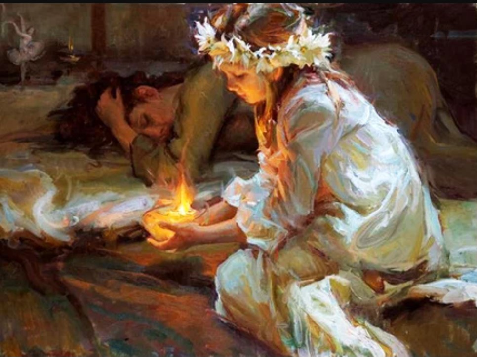 Луч алого закатного солнца проник через маленькое окошко избы и заскользил по горнице.
