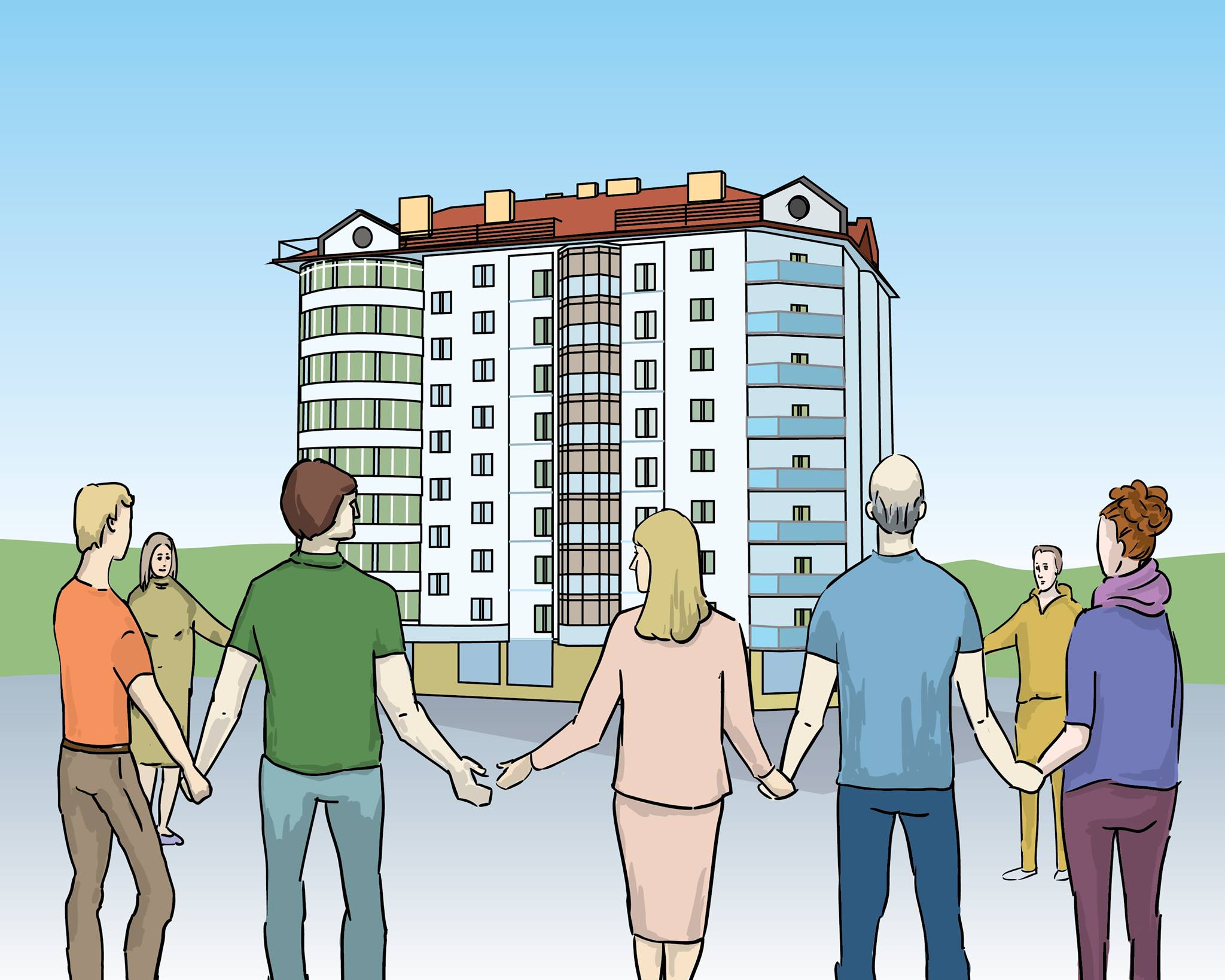 Вся компания, включая Мухоморину, выходит из квартиры.