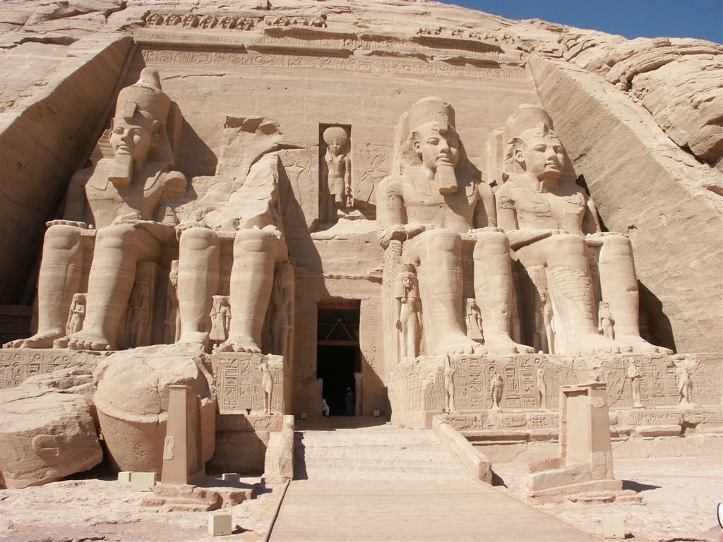 Абу-Симбел – это скальная гряда в Нубии, в 300-х километрах южнее Асуана, на западном берегу Нила. Храм Нефертари в Абу-Симбеле – это малый храм, а ещё там сооружён грандиозный храм самого её царственного супруга. Вход в храм Рамсеса Великого охраняют четыре двадцатиметровые статуи фараона, как символ его непреходящего могущества. В самом храме изображён фараон, поклоняющийся самому себе в образе Амона-Ра, и отображены важнейшие исторические события той эпохи, победы и свершения Рамсеса II.