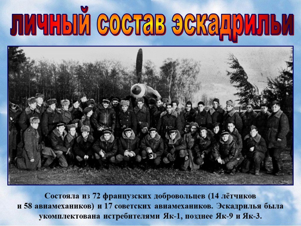 В годы Великой Отечественной войны полк "Нормандия-Неман" летал только на самолётах Як-3. Ранее, когда полк назывался "Нормандия" он летал на Як-1 и Як-9. Лётчики полка одержали 273 победы и потеряли в советском небе 42 лётчика.