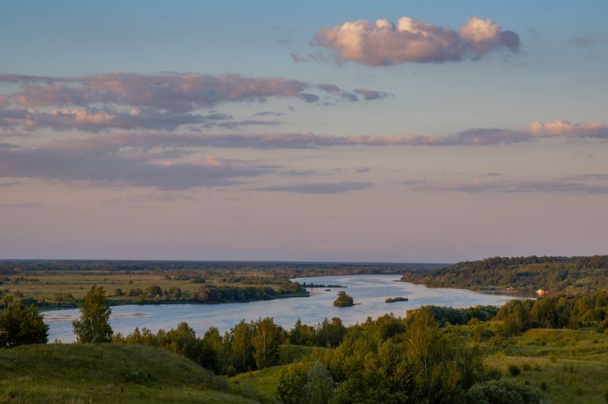 С берега высокого видно небо с заревом,