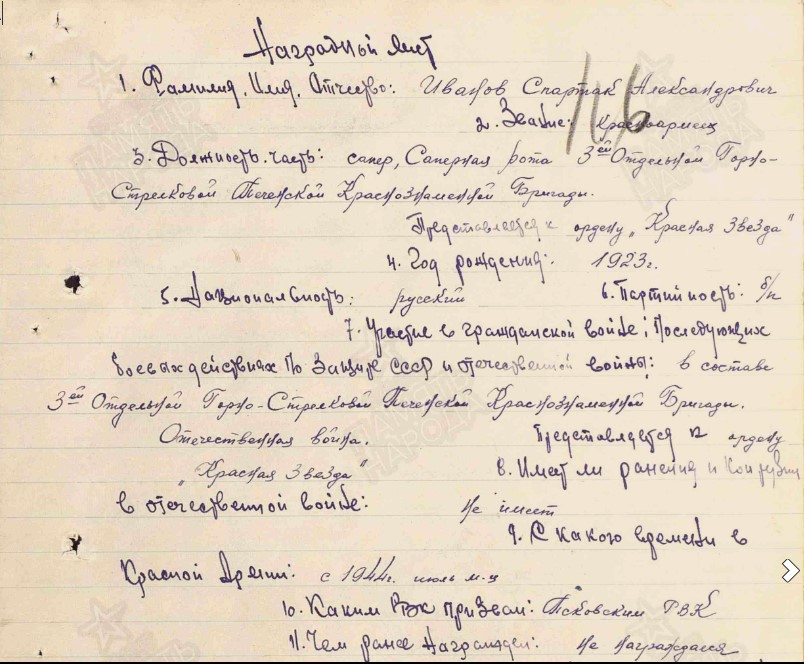 В превью у меня наградной лист моего отца Иванова Спартака Александровича.