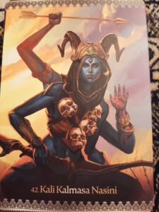 Кали Калмаса Насини приходит к нам, когда нам нужно знать, что у нас есть такая божественная поддержка для достижения нашей цели, что мы можем позволить себе относиться к тому, что должно произойти, с некоторой осторожностью. Нам не нужно подходить к каждому конфликту со всех сторон. Хотя мощность будет расти, чтобы удовлетворить потребности, мы можем предоставить немного пространства для передышки для того, чтобы это произошло инстинктивно, и только в той степени, в которой это необходимо. Божественное знает, как добиться цели наилучшим образом. Если мы укрепим нашу внутреннюю связь с этой божественной мудростью, мы спонтанно узнаем, как действовать. Оракул советует вам присутствовать и делать только то, что кажется правильным в каждый момент, а не реагировать или решать, каким, по вашему мнению, должно быть ваше поведение. Вы почувствуете, как лучше всего действовать, оставаясь верным своей интуиции и инстинктам. Божественная Мать ведет вас, и вам не нужно бояться.
