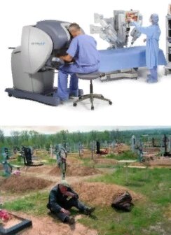 Да... В условиях товарно-рыночных отношений в России, капиталисту гораздо выгоднее продать микстурку или таблетки (дешёвая по себестоимости вытяжка из трав) по дорогостоящей цене "спасительной" панацеи. Хотя, скорее ханаанского бальзама. Про различие этих двух понятий многие знают... Чем лечить или оперировать того, который не может даже и заплатить... Причём операция сравнительно сложная и часто дорогостоящая... Как и обследование и лечение перед самой операцией. "А как же различные квоты для простых граждан по обычному полису ОМС в самых столичных хирургических центрах с высокими технологиями???" - скажете вы... Отвечу: Именно КВОТЫ!!! Где не каждому второму и даже сотому или тысячному старше 60-ти... Взгляните на этот хирургический комплекс для роботических операций. Компания Intuitive Surgical Inc (Калифорния, США). Стоимость комплекса 2,5 млн. евро!