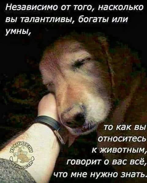 Первое, что я хотел бы подметить, так это то, что люди, которые любят животных, которые часто с ними общаются - очень добрые. На таких реально можно положиться. Почему - то сложилось так, что таким людям я доверяю больше всего. Такой человек никогда не сделает что-то для тебя плохое, никогда не полезет в драку первым. К тому же, такие люди стрессоустойчивые и большую часть времени спокойные. Добр к животным? Добр и к людям.