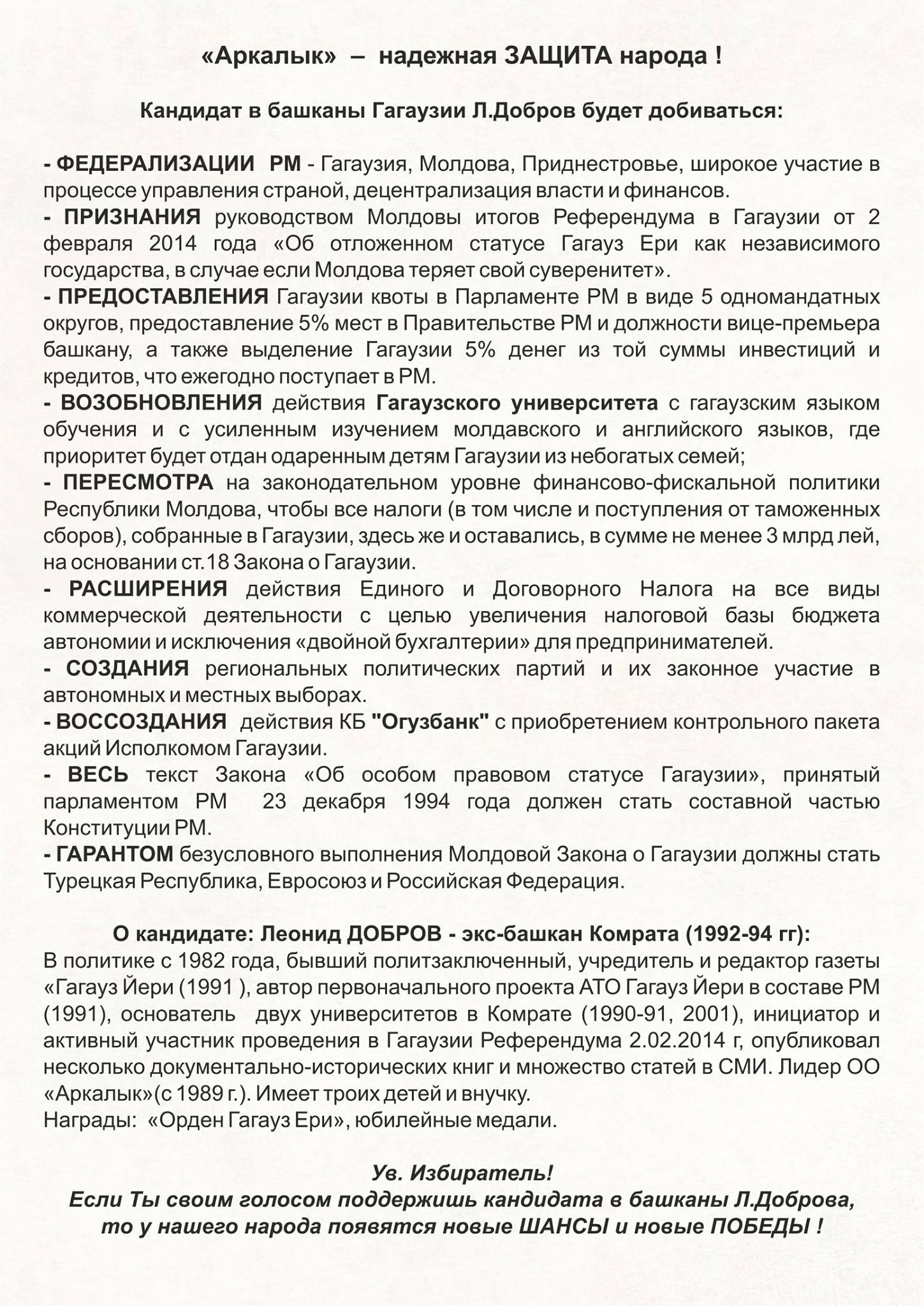 ПОЭТОМУ, ОБРАЩАЮСЬ лично к уважаемым кандидатам в башканы Гагаузии Д.Кройтор и О.Гаризан!  Уважаемые Дмитрий Васильевич и Олег Федорович!!!