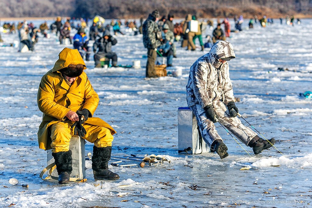 – Ух ты! Молодая и красивая над лункой сидит! Не замёрзла? С праздником! Видать, рыба тебя любит!