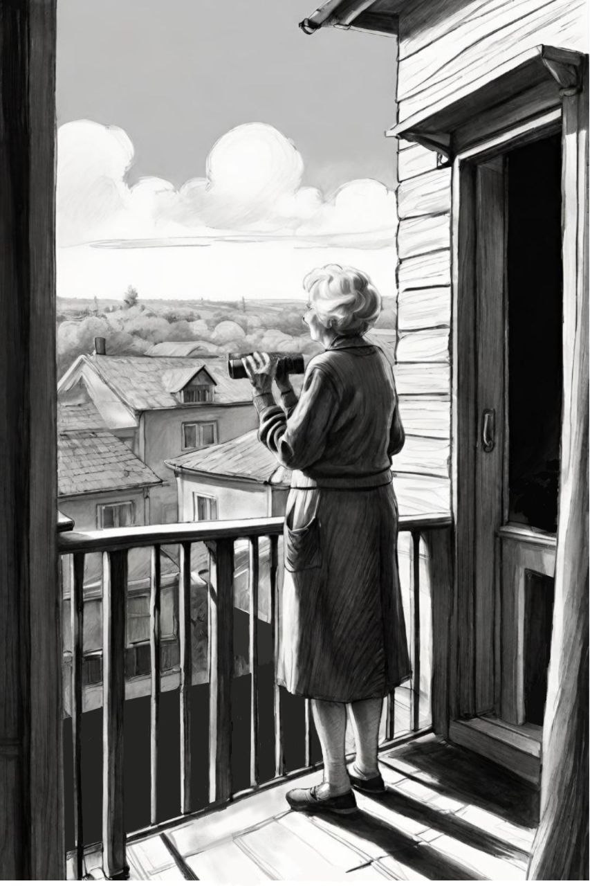 Хорошо в своём доме жить, никаких пьяных и шумных соседей, но только не в этом случае. В ближайшем от них доме живёт капитан со своей женой и когда он в плавании, она в бинокль за соседями следит и сплетничает с такими же «товарками» как она.