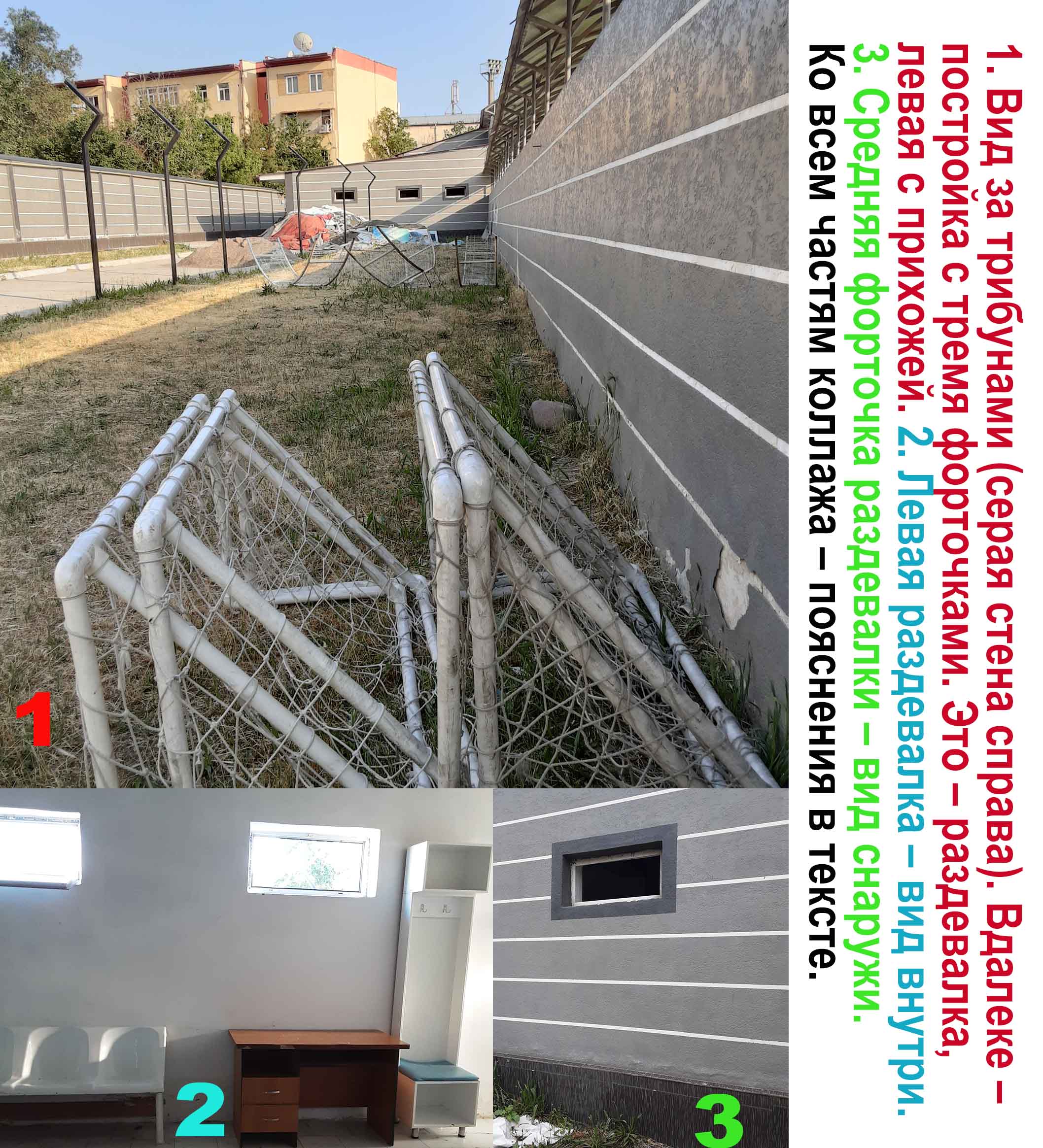 Наружная дверь со стороны стадиона, между двумя половинами трибун общей протяжённостью не менее ста метров, да в двух уровнях с широкими проходами перед рядами и позади них, ведёт в прихожую, в которой есть двери – налево и направо.