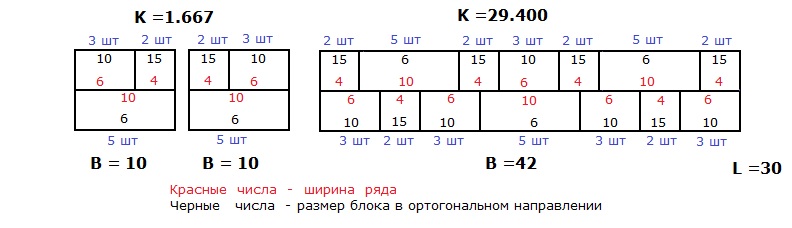 Такое представление иллюстраций - самое компактное и довольно удобное. Над каждой кладкой пишу значение основного критерия К. Справа даю значение длины всех рядов L.