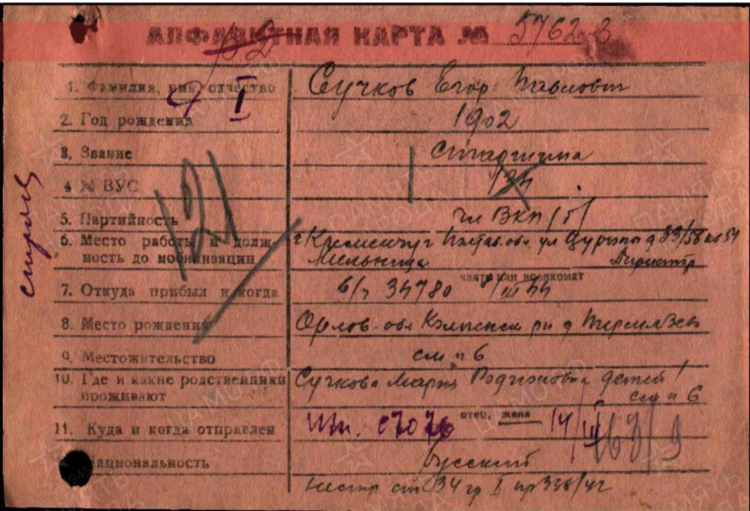 В марте 1944 года на пересыльном пункте была заполнена АЛФАВИТНАЯ КАРТА (см. перед заголовком).