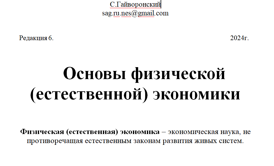 2. Экономическая деятельность субъектов с позиций физической (естественной) экономики.