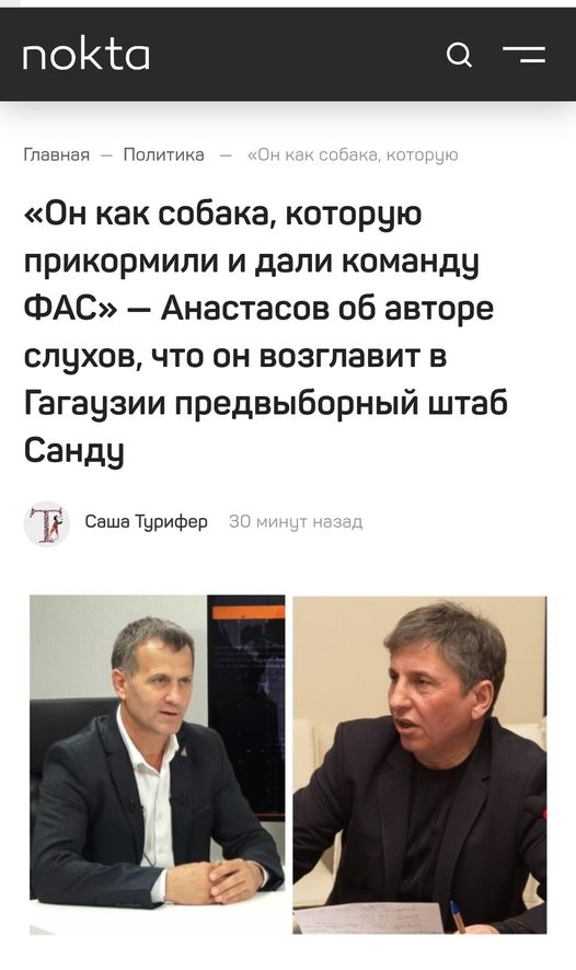 «Он как собака, которую прикормили и дали команду ФАС» — Анастасов о Доброве, авторе статьи на сайте http://proza.ru/2024/08/19/1237, где говорится о том, что Анастасов якобы обязан будет возглавить в Гагаузии предвыборный штаб Санду.