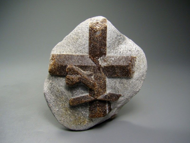 Ставролит - силикат алюминия и железа, необычный минерал, образующий сростки кристаллов, напоминающие по форме крест, чаще всего кристаллы располагаются под углом в 60 градусов, но редко бывают и под 90.