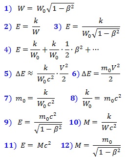 Заменив в (11) E на (9), получим формулу для релятивистской массы (12).
