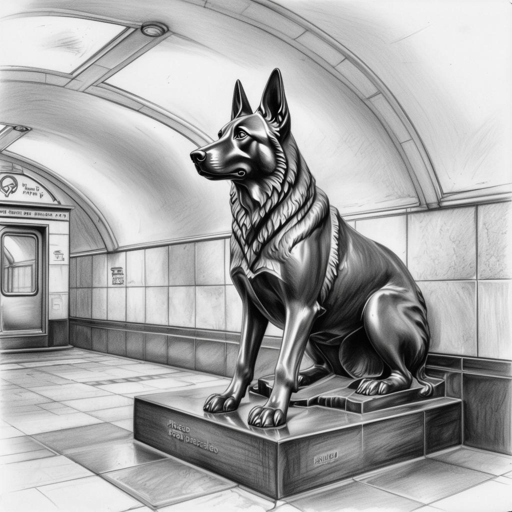 Путь домой пролегал через станцию метро Площадь Революции. Прототипом создания одной из скульптур на этой станции стала немецкая овчарка – Ирма. Существует поверье – погладить нос собаки – на удачу. Не сговариваясь, вышли с Марусенькой на именно этой станции. Четыре собаки, четыре носа – погладили всех, чтоб наверняка всё получилось!