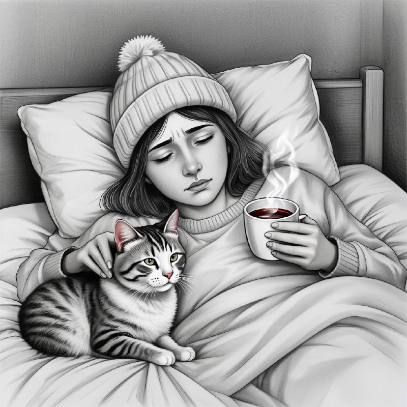 Водрузив на голову шапчонку собралась лечь спать, но организму стало совсем неуютно, легкий озноб пробежал по телу, я укрылась одеялом. Не помогло. Тут меня осенило – мы стали счастливыми обладателями устройства, измеряющего температуру. Градусник явно сошёл с ума – 38,5. Не могёт такого быть!!!! Стряхнула, засунула обратно подмышку. Результат тот же. Приплыли. Сижу в шапочке, силы сразу покинули меня, слабость навалилась на всё тело в придачу ещё и ломота появилась. Какая уж теперь красота, сняла шапочку, посопела, легла. Дочурка заварила чай с лимоном, я от заботы и чуткости млела. Постепенно сон навалился на меня и в этот миг, когда я была уже готова провалиться и мирно засопеть, пришёл кот Джек. Любимое место этого проказника - моя голова. Этот раз не стал исключением. Устроившись поудобнее, он активно принюхивался к моей голове. Я сразу встрепенулась, сон как рукой сняло, ага, налижется перца, потом лечи его. Или нанюхается и станет с чудинкой. Объясняй потом ветеринару, как такое могло произойти. Джек – кот ласковый, но настырный, его так просто не прогонишь. И чем его так привлекла настойка? Не понятно. Валерьянку что ли добавили в чудо состав? К трём часам ночи мои попытки увенчались успехом, Джек ретировался. Я спокойно погрузилась в мир снов.