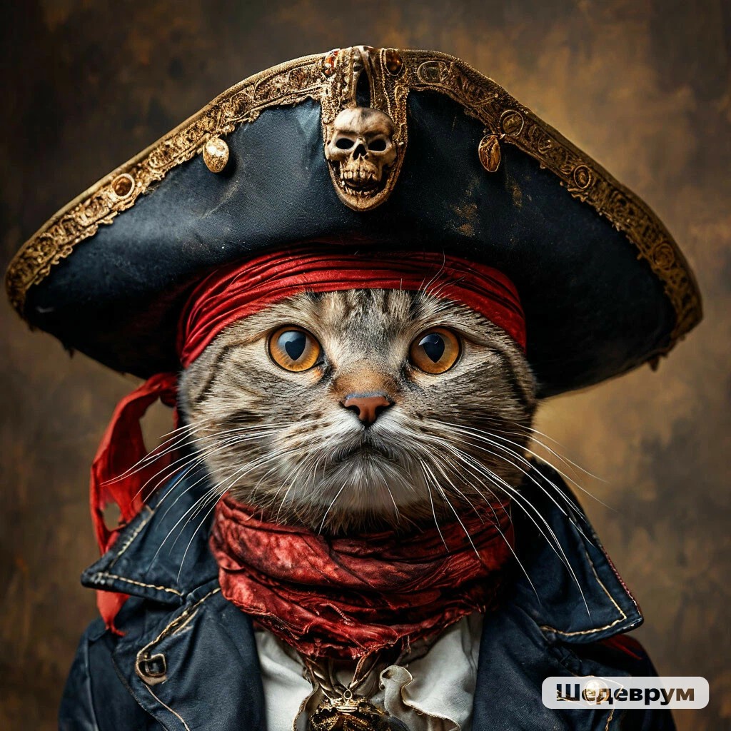 Ну, а что бы вы сделали, если обнаружили рядом с собой огромного, чёрного кота с повязкой на одном глазу и роскошной такой пиратской шляпе на голове.