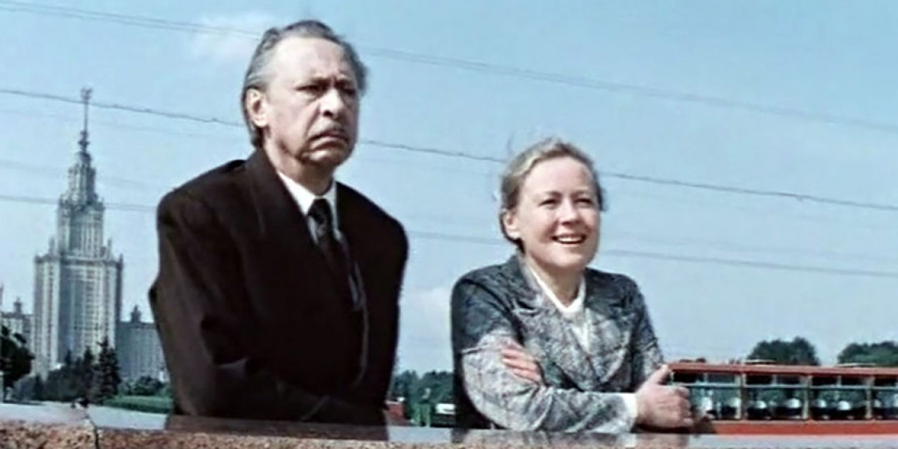 Илл.:замечательная яркая картинка из фильма, в которой Москва тоже персонаж и герой фильма. На фоне МГУ на Воробьевых горах Ия Саввина читает стихи Давида Самойлова.
