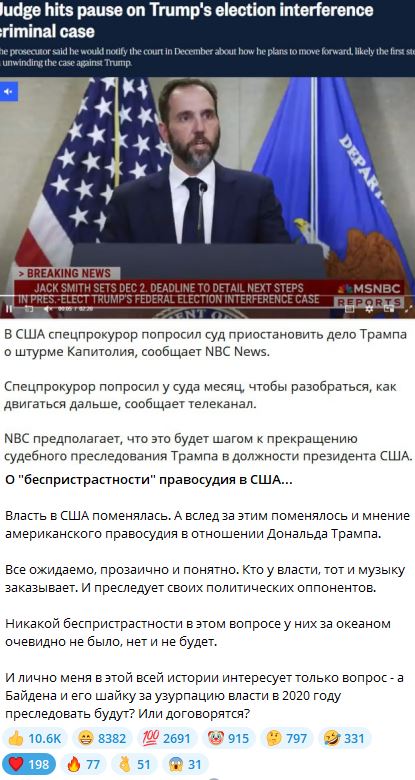 В любом случае с Харрис для нас было все понятно – эта стерва вела свою страну к полному параличу и краху, а вот с Трампом пока не ясно. И это немного напрягает. Также напрягают его мечты предложить формулу по Украине. Искренне надеюсь, что наши на эти «формулы» не поведутся. Минимум на этих переговорах должно быть: