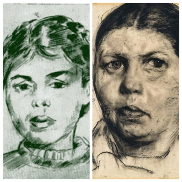 Коллаж из портретов Ксении Некрасовой работы Фалька и Глазунова